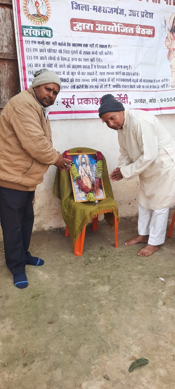 महाराजगंज :- दिनांक २४.११.२४ दिन रविवार को अखिल भारतीय ब्राह्मण एकता परिषद, जनपद महाराजगंज इकाई की मासिक बैठक रानीपुर चौराहे से पूरब पंडितपुर ,पंडित दिनेश पाण्डेय के विद्यालय पर पंडित सूर्य प्रकाश चतुर्वेदी की अध्यक्षता मे सम्पन्न हुई।