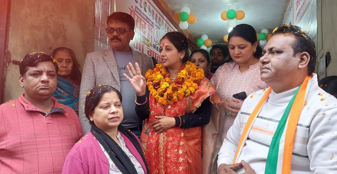 रुड़की।पश्चिमी अंबर तालाब वार्ड 30 से कांग्रेस पार्षद प्रत्याशी चारु चंद्र के चुनावी कार्यालय का उद्घाटन करने पहुंची मेयर पद की प्रत्याशी पूजा गुप्ता ने वार्डवासियों से अपील करते हुए कहा कि सभी को नगर के विकास के लिए पार्षद तथा मेयर पद के प्रत्याशी को ही चुनना होगा।उन्होंने कहा कि नगर में जो विकास कार्य लंबे समय से रुके बड़े हैं,उन्हें तभी गति दी जा सकती है जब मेयर के साथ-साथ नगर निगम में पार्षदों का भी पूर्ण बहुमत हो।