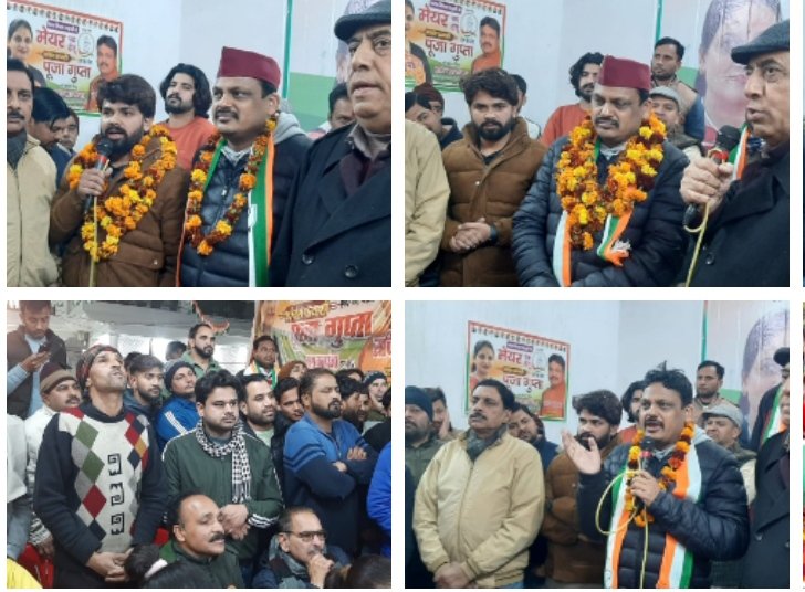 उन्होंने कहा कि अगर क्षेत्र की जनता का उनके धर्मपत्नी को आशीर्वाद मिला तो बोर्ड चलाने में परिपूर्ण है और नगर निगम को बेहतर तरीके से चलाएंगी।वरिष्ठ कांग्रेस नेता हाजी सलीम खान ने कहा कि पठानपुरा के निवासी मेयर प्रत्याशी पूजा गुप्ता के साथ हैं तथा मुस्लिम समुदाय कांग्रेस प्रत्याशी के पक्ष में अपना विश्वास व्यक्त करेगा।वरिष्ठ समाजसेवी सुभाष सैनी तथा युवा समाजसेवी जमाल अहमद ने भी अपने विचार व्यक्त कर सभी से कांग्रेस प्रत्याशी के मतदान पक्ष में मतदान करने की अपील की।