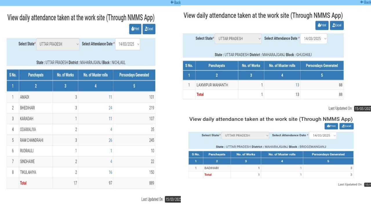 महराजगंज- भारत में होली एक बड़ा पर्व मना जाता है इस दिन पूरा देश होली के रंग में डूबा रहता हैं तो वही उत्तर प्रदेश के महराजगंज जनपद के तीन ब्लॉक निचलौल, बृजमनगंज और घुघली में मनरेगा (Mahatma Gandhi National Rural Employment Guarantee) का कार्य जारी रहा। इन ब्लॉकों में 14 मार्च 2025 को कुल 980 मजदूरों का हाजिरी लगाया गया। खासतौर पर निचलौल ब्लॉक सबसे आगे रहा, जहां 889 मजदूरों की हाजिरी दर्ज की गई।