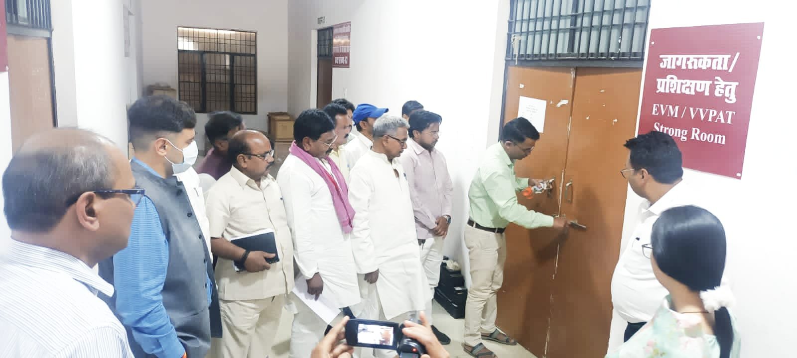 महराजगंज, 19 मार्च 2025, जिलाधिकारी श्री अनुनय झा द्वारा आज ईवीएम एवं वीवीपैट के सुरक्षित भण्डारण एवं सुरक्षा का त्रैमासिक निरीक्षण कलेक्ट्रेट परिसर में स्थित वीवीपैट के स्ट्रांग रूम के वेयरहाउस / गोदाम का आज अपराह्न 01:00 बजे निरीक्षण राजनीतिक दलों के प्रतिनिधियों की उपस्थिति में किया गया।