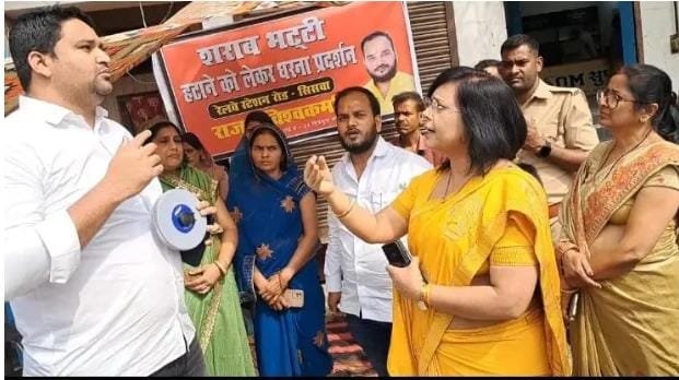 सिसवा बाजार:- कोठीभार थाना क्षेत्र अंतर्गत सिसवा नगर पालिका के रेलवे स्टेशन के समीप 24 वार्ड नंबर चित्रगुप्त स्थित देसी और विदेशी शराब की दुकान को हटाने की मांग को लेकर आज सुबह सभासद प्रतिनिधि राजन विश्वकर्मा ने धरने पर बैठे गए , इस आंदोलन को महिलाओं का भी समर्थन मिला, प्रेमलाल सिंघानिया कन्या इंटर कॉलेज की प्रधानाचार्य शशिकला सिंह सहित अन्य महिलाएं भी धरने पर शामिल हुए और शराब की दुकान को हटाने की मांग को लेकर समर्थन दिया और राजन विश्वकर्मा ने जिला प्रशासन को पत्र देकर अनुरोध किया और कहे कि पत्र के बावजूद जब कोई कार्यवाई नहीं हुई तो उन्होंने शराब भट्टी को हटाने के लिए धरना प्रदर्शन शुरू कर दिया जाए गा