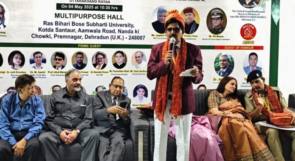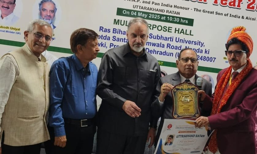 रुड़की।उत्तराखंड प्रदेश का नाम देश-विदेश में रौशन करने वाले प्रसिद्ध कवि व शायर अफजल मंगलौरी को भारत के बुद्धिजीवियों, शिक्षाविदों और ब्यूरोक्रेट्स की 46-वर्ष पुरानी संस्था आल इंडिया कॉन्फ्रेंस ऑफ इंटेलेक्चुअल्स (एआईसीओआई) द्वारा देहरादून के सुभारती यूनिवर्सिटी सभागार में “उत्तराखंड रत्न” से सम्मानित किया गया।