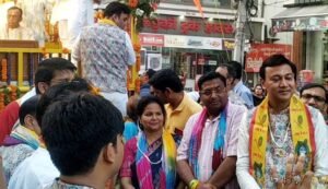 शोभायात्रा में महिलाओं द्वारा भगवान जगन्नाथ जी के जय घोष के साथ आरती की गई।बड़ी संख्या में शामिल भक्तों ने भगवान जगन्नाथ जी का गुणगान करते हुए भव्य शोभा यात्रा को नगर के सिविल लाइन मुख्य बाजार से निकाली,जहां पर नगर वासियों ने पुष्प वर्षा कर शोभा यात्रा का स्वागत किया।