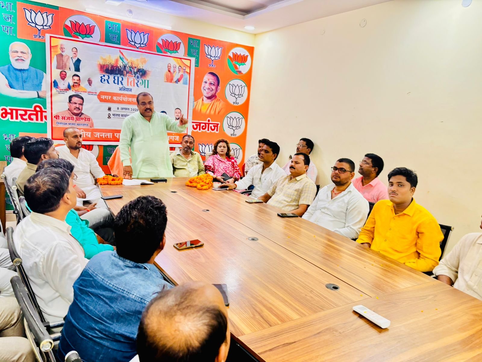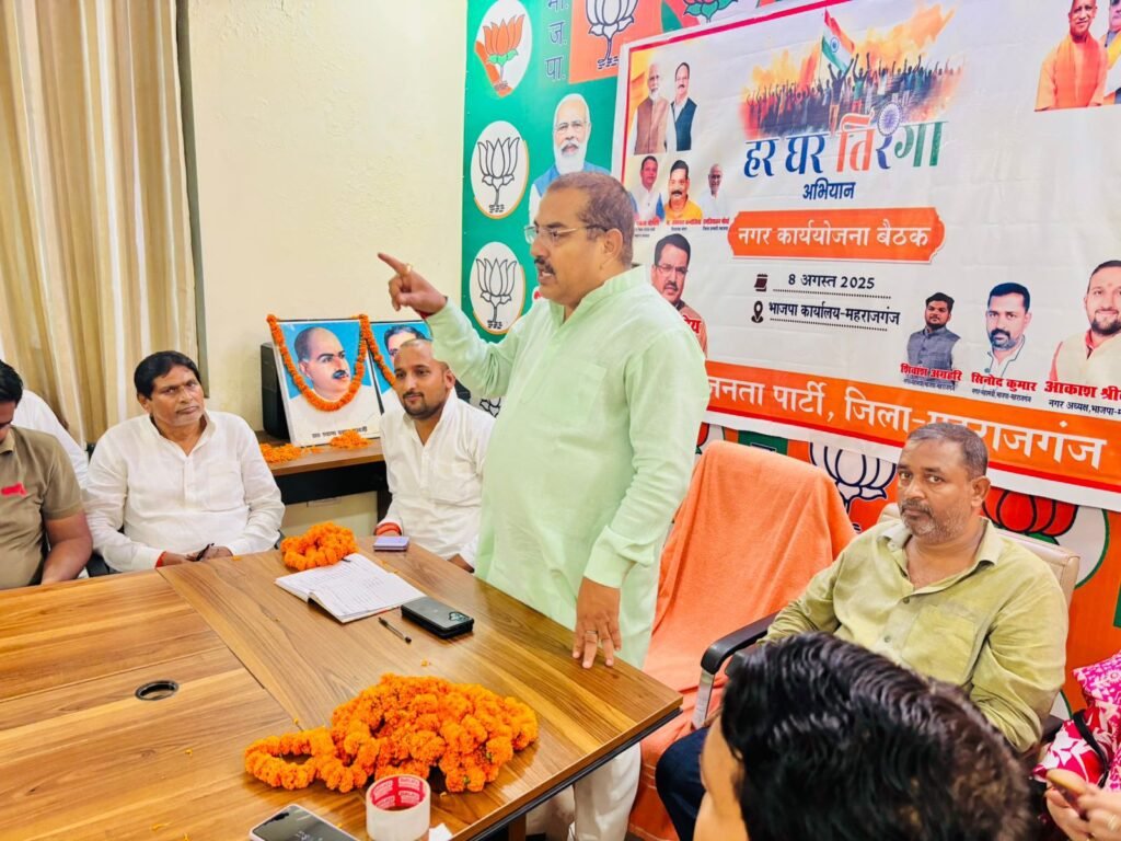 आज नगर मंडल की बैठक भाजपा जिला कार्यालय पर हर घर तिरंगा अभियान को लेकर जिला कार्य योजना का बैठक आयोजन किया गया बैठक के मुख्य अतिथि के रूप में जिला भाजपा अध्यक्ष संजय पाण्डेय रहें कार्यक्रम की अध्यक्षता नगर अध्यक्ष आकाश श्रीवास्तव ने किया। भाजपा जिलाध्यक्ष ने कहा कि प्रदेश संगठन नेतृत्व के द्वारा हर “घर तिरंगा अभियान” को कार्यकर्ताओं के नेतृत्व मे सफल बनाने के लिए जिम्मेदारी सौप गया हैं।