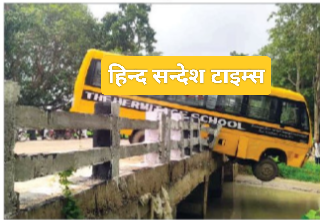 कुशीनगर : रेलिंग तोड़कर पुल पर जा लटकी स्कूली बस