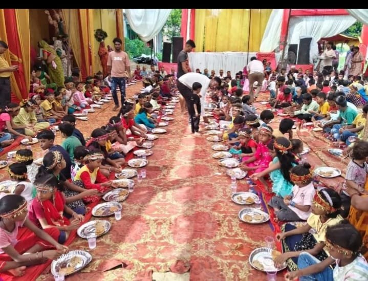 वार्षिक परंपरा के अनुसार इस वर्ष भी 201 कन्याओं का पूजन विधिवत सम्पन्न हुआ। कन्याओं को हलवा-पूरी और फलाहार परोसा गया तथा चरणस्पर्श कर सम्मानपूर्वक विदाई दी गई। शाम को गांव के तालाब पर गंगा आरती और आकर्षक झांकी ने भक्तों का मन मोह लिया।