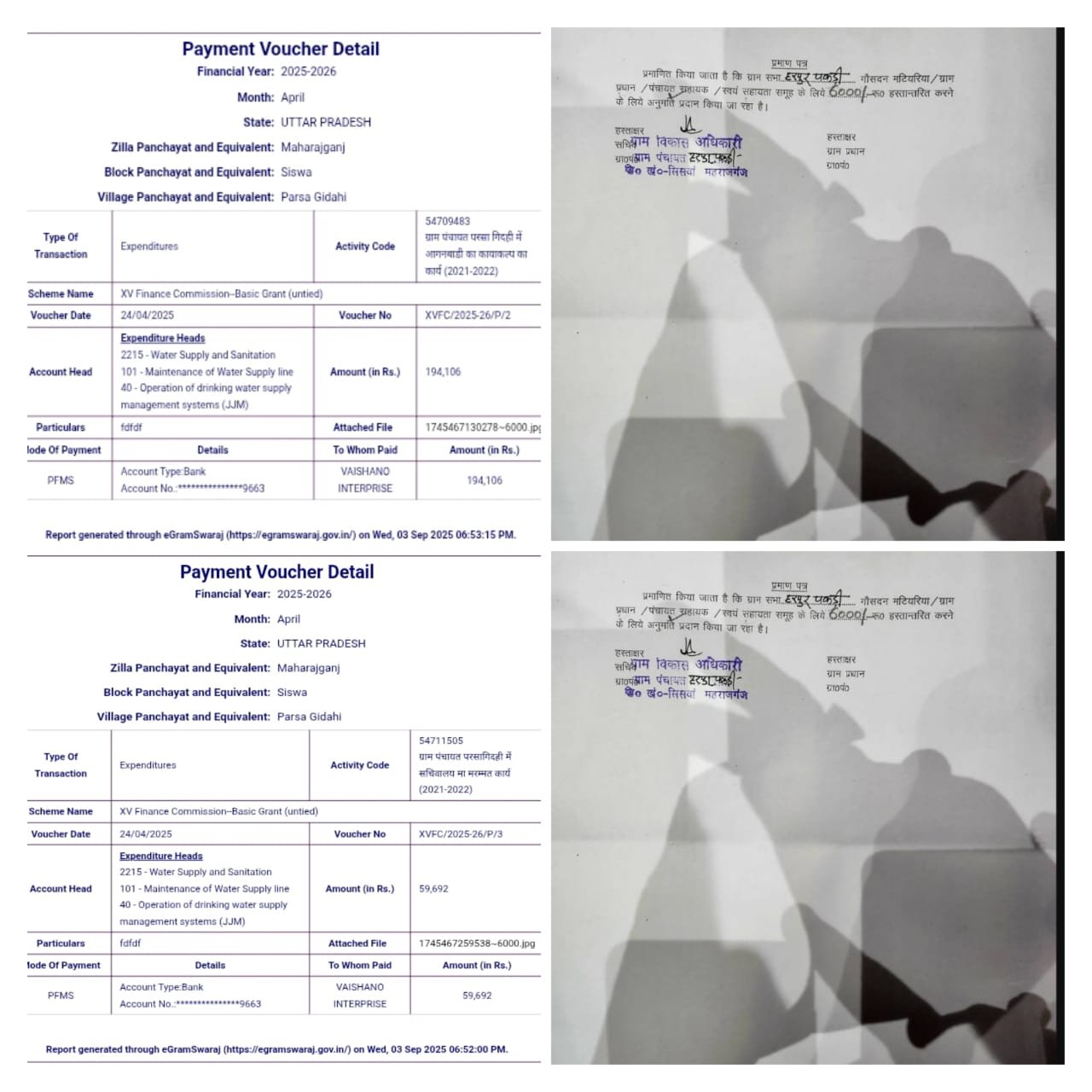मिली जानकारी के अनुसार, 24 अप्रैल 2025 को ग्राम पंचायत स्तर पर दो अलग–अलग बाउचर जारी किए गए।