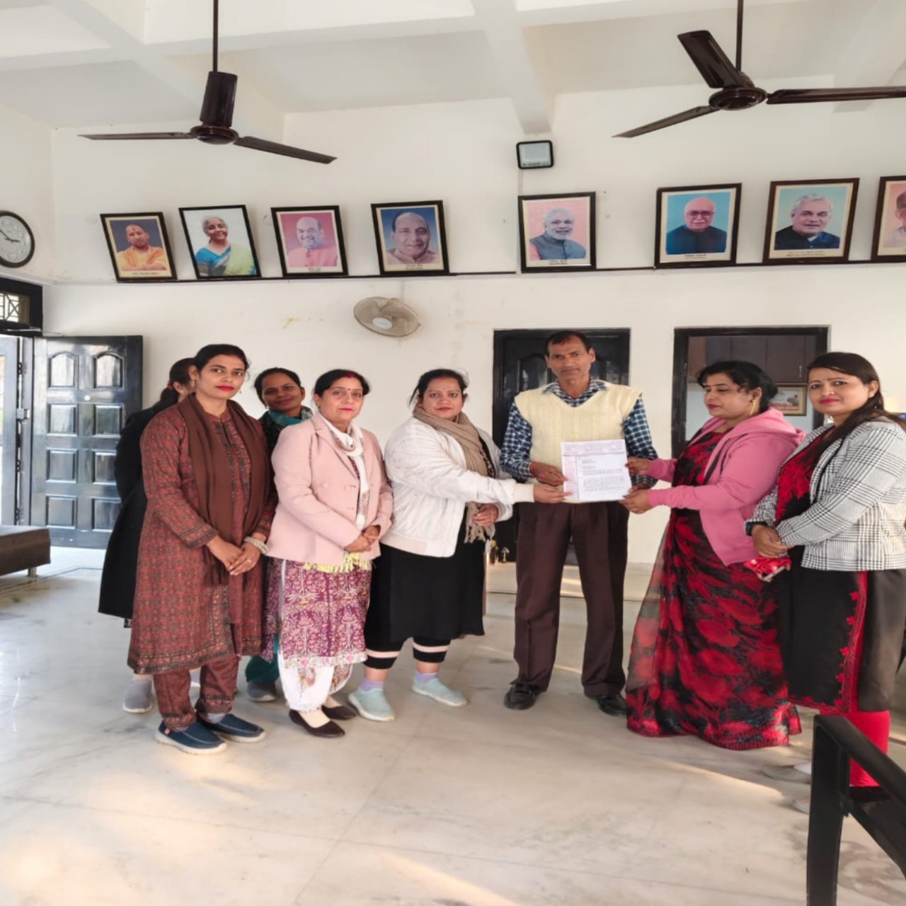 महराजगंज, 09 दिसंबर 2025 को उत्तर प्रदेश महिला शिक्षक संघ जनपद शाखा महराजगंज की जिलाध्यक्ष श्रीमती वंदना त्रिपाठी के नेतृत्व में शिक्षकों के एक प्रतिनिधिमंडल ने मंगलवार को सांसद महोदय के प्रतिनिधि को ज्ञापन सौंपकर 27 जुलाई 2011 से पूर्व नियुक्त बेसिक शिक्षकों पर टीईटी (शिक्षक पात्रता परीक्षा) की अनिवार्यता समाप्त करने की मांग उठाई।