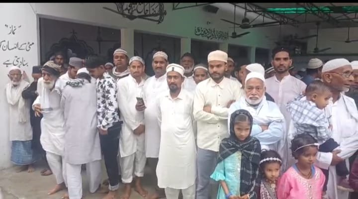 ईद की नमाज़ मौलाना सकील अहमद की इमामत में अदा की गई, जिसके बाद विशेष दुआ की गई। नमाज़ के उपरांत सभी नमाजियों का ईदगाह में स्वागत किया गया।
