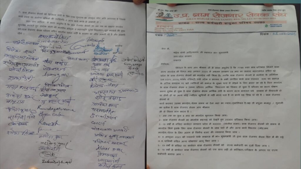 परतावल/महराजगंज :- ग्राम रोजगार सेवक संघ ने अपने लंबित वेतनमान और बकाया भुगतान को लेकर एक बार फिर जोरदार आवाज उठाई है। संघ के पदाधिकारियों व सदस्यों ने एकजुट होकर पूर्व जिला पंचायत सदस्य काशीनाथ सिंह को ज्ञापन सौंपते हुए 8 माह से लंबित वेतन के तत्काल भुगतान और वेतनमान में वृद्धि की मांग की।